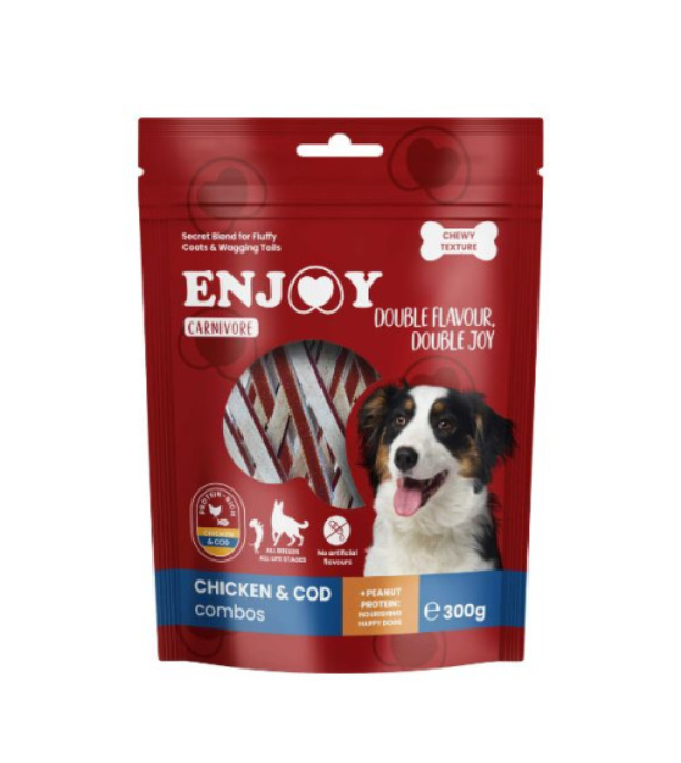 Recompense pentru caini Enjoy Carnivore Chicken Combo cu pui si cod 300 gr